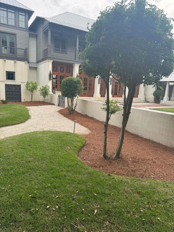 Textraw recommends coverage of 1/2 pound per square foot. This produces an installed depth of 3 to 3 1/2 inches. Each roll of Textraw covers 80 sq ft. The old decomposing mulch should be removed, and the soil treated with pre-emergent, to kill any ungerminated weed seeds. If Textraw is applied as a top-dress over old natural straw, seeds in the old straw will continue to germinate, requiring repeated treatments to control weeds. This decomposing material also blocks airflow to roots, impedes evaporation, and promotes a welcoming environment for termites, roaches, mold, and mildew. That means more labor and chemical treatments. While the installation may look good initially, the needles cannot be fluffed without mixing the two layers, and the and the only option will be to continually add layers of Textraw top-dressing.